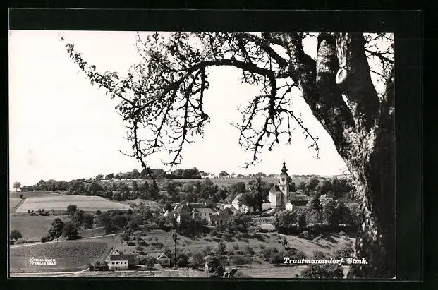 AK Trautmannsdorf, Ortsansicht von einer Anhöhe aus