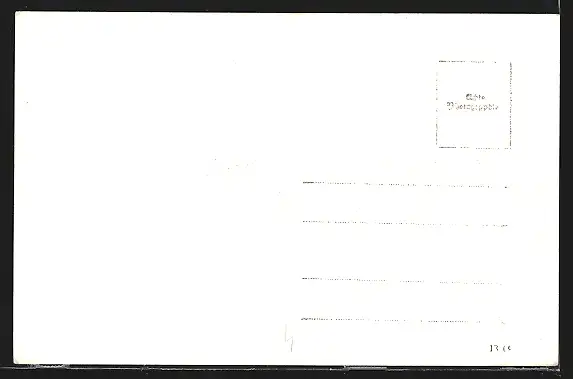 Personenbezogene Daten auf der Rückseite der Karte wurden durch blauen Textmarker unkenntlich gemacht. Die blauen Stellen sind auf die Vorderseite durchgeweicht und wirken sich negativ auf das Postkartenfoto aus