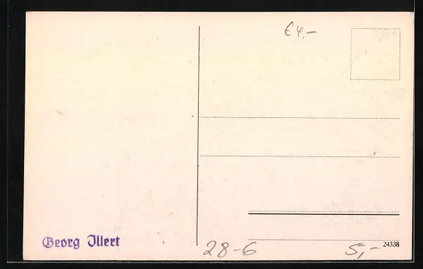 Personenbezogene Daten auf der Rückseite der Karte wurden durch blauen Textmarker unkenntlich gemacht. Die blauen Stellen sind auf die Vorderseite durchgeweicht und wirken sich negativ auf das Postkartenfoto aus