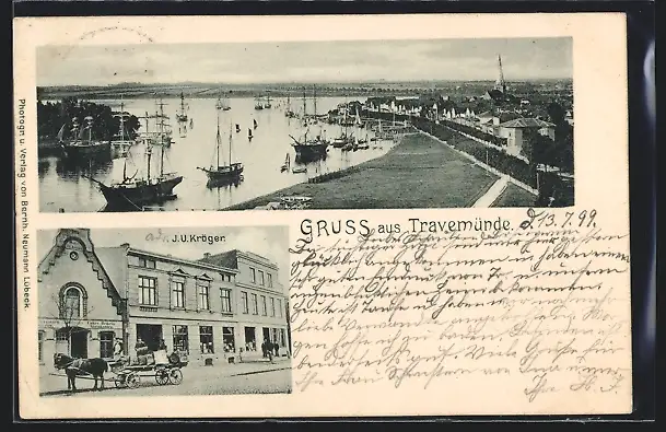 AK Travemünde, Geschäft von J. U. Kröger, Uferpartie