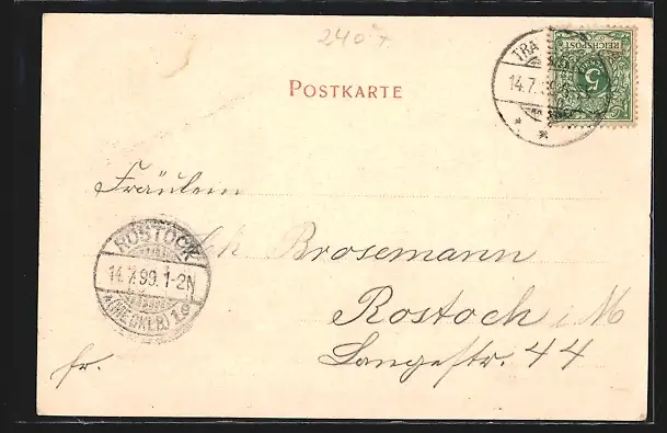 gelaufen 1899, Eckknick li. unten, guter Zustand