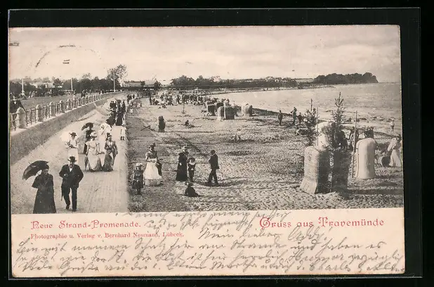 AK Travemünde, Neue Strand-Promenade mit Flaneuren