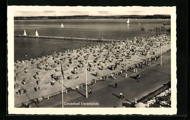 AK Travemünde / Ostsee, Strandpanorama mit Strandkörben