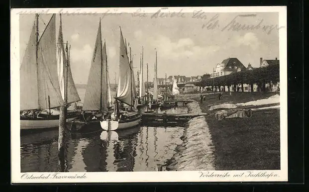 AK Travemünde / Ostsee, Vorderreihe mit Jachthafen