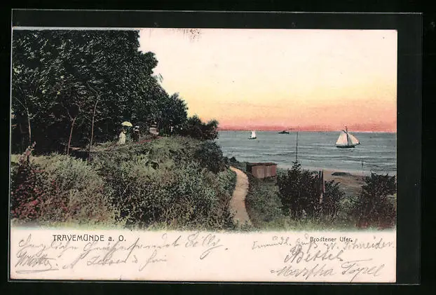 AK Travemünde, Segelboote auf der Ostsee im Abendrot