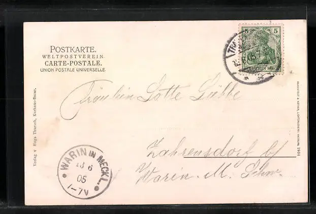 alte Ansichtskarte, gelaufen 1905, guter Zustand