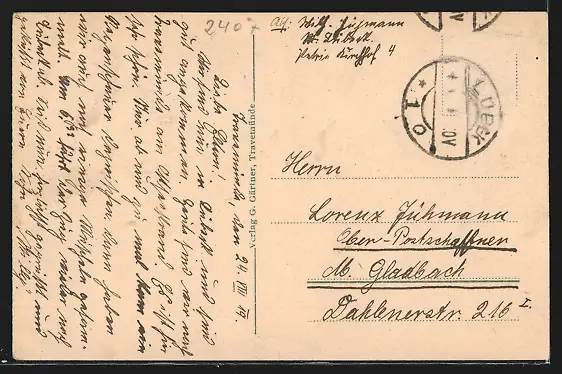 alte Ansichtskarte, gelaufen 1919, Eckknick re. unten, guter Zustand