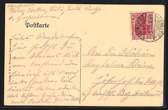 alte Ansichtskarte, gelaufen 1919, Eckknick unten re., Einriss unten li., guter Zustand