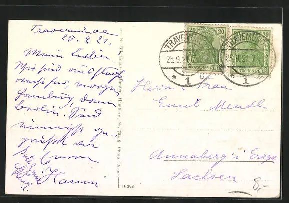alte Ansichtskarte, gelaufen 1921, Stempelspur, guter Zustand