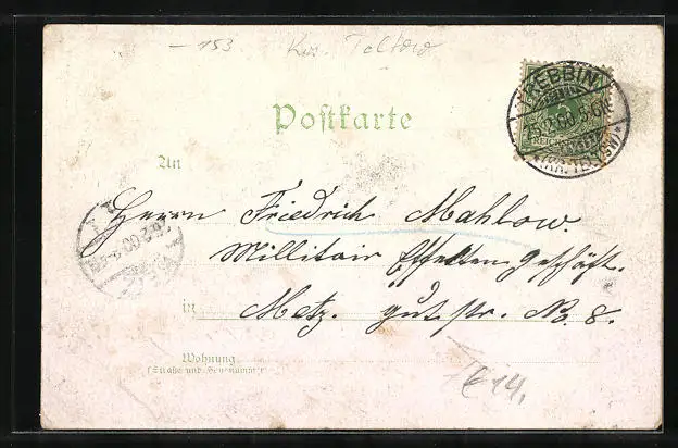 alte Ansichtskarte, gelaufen 1900, Eckknick re. unten, guter Zustand