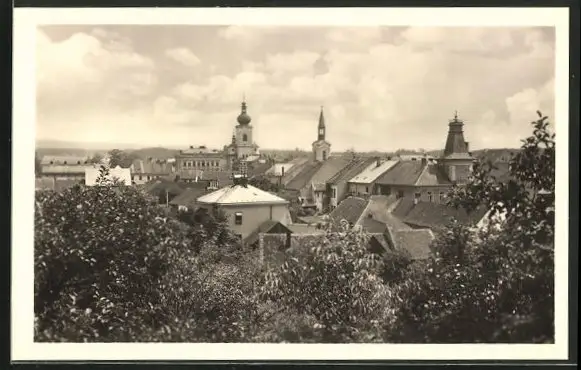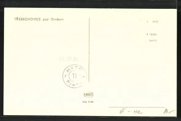 AK Trebechovice pod Orebem, Ortsansicht aus der Vogelschau