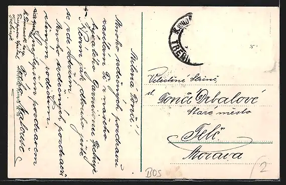 alte Ansichtskarte, gelaufen, Briefmarke entfernt, rückseitig Oberflächenschaden, guter Zustand