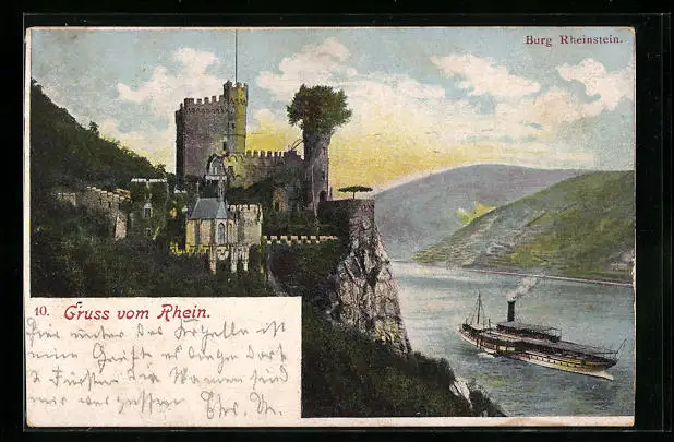 AK Trechtingshausen, Burg Rheinstein mit Rheindampfer