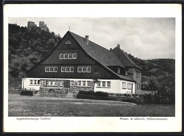 AK Treffurt, Jugendherberge, Frontalansicht mit Garten