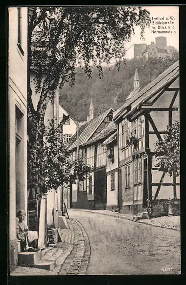 AK Treffurt a. W., Ziddelstrasse m. Blick n. d. Normannenstein