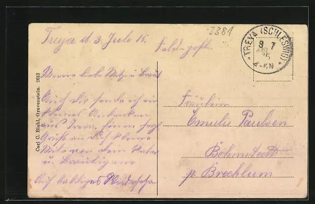 alte Ansichtskarte, gelaufen als Feldpost 1915, Einriss li., guter Zustand