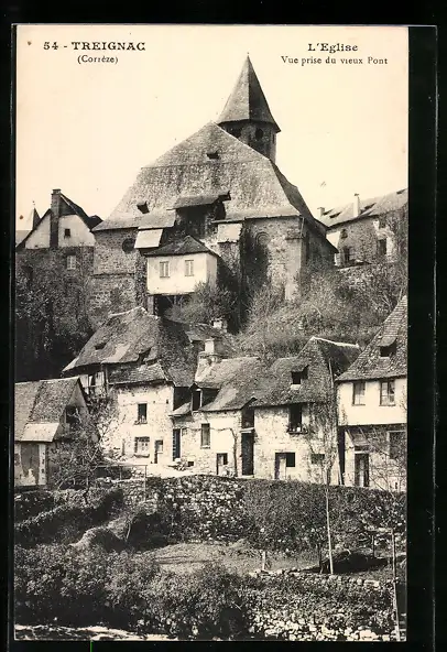 AK Treignac, L`Eglise vue prise du vieux Pont