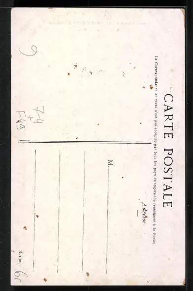 Personenbezogene Daten auf der Rückseite der Karte wurden durch blauen Textmarker unkenntlich gemacht. Die blauen Stellen sind auf die Vorderseite durchgeweicht und wirken sich negativ auf das Postkartenfoto aus