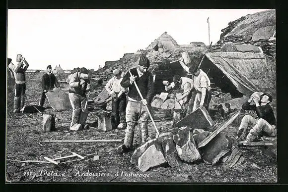 AK Trélazé, Ardoisiers à l`ouvrage, Steinbruch