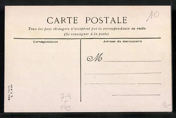 Personenbezogene Daten auf der Rückseite der Karte wurden durch blauen Textmarker unkenntlich gemacht. Die blauen Stellen sind auf die Vorderseite durchgeweicht und wirken sich negativ auf das Postkartenfoto aus