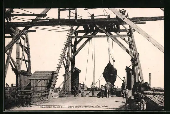 AK Trélazé, Extraction d`un bloc d`ardoise