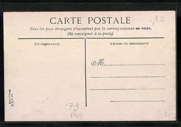 Personenbezogene Daten auf der Rückseite der Karte wurden durch blauen Textmarker unkenntlich gemacht. Die blauen Stellen sind auf die Vorderseite durchgeweicht und wirken sich negativ auf das Postkartenfoto aus