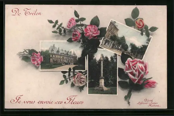 AK Trélon, Gebäudeansicht, Denkmal, Ortspartie