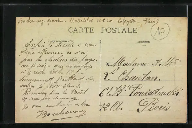 Personenbezogene Daten auf der Rückseite der Karte wurden durch blauen Textmarker unkenntlich gemacht. Die blauen Stellen sind auf die Vorderseite durchgeweicht und wirken sich negativ auf das Postkartenfoto aus