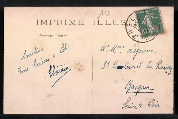 Personenbezogene Daten auf der Rückseite der Karte wurden durch blauen Textmarker unkenntlich gemacht. Die blauen Stellen sind auf die Vorderseite durchgeweicht und wirken sich negativ auf das Postkartenfoto aus