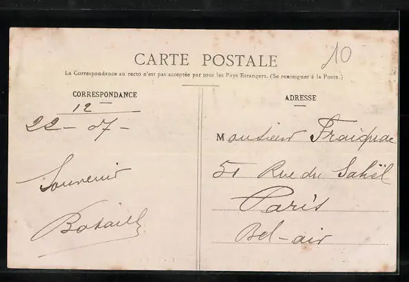 gelaufen 1907, Briefmarke tw. entfernt, guter Zustand