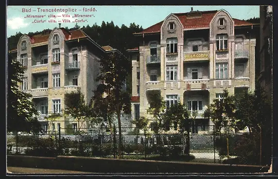 AK Trencenteplic, Villa Miramare und Ansicht der Villa Corfu