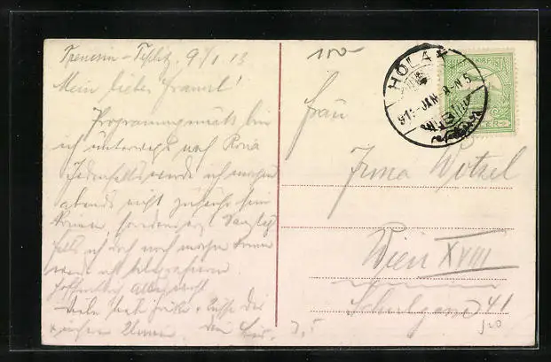 gelaufen 1913, Eckknick unten links, guter Zustand