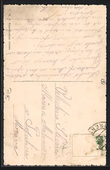 alte Ansichtskarte, gelaufen, Briefmarke entfernt, rückseitig Oberflächenschaden, guter Zustand