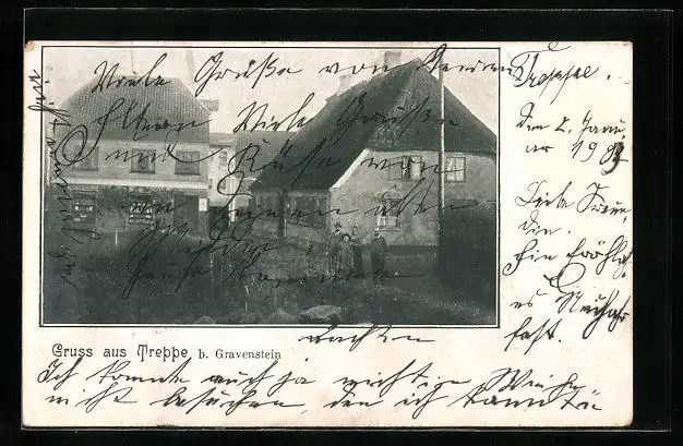 AK Treppe b. Gravenstein, Ortspartie mit Passanten