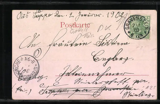 alte Ansichtskarte, gelaufen 1903, Einriss oben li., guter Zustand