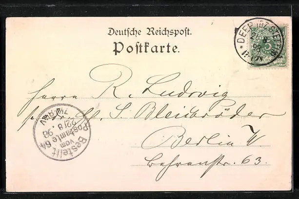 alte Ansichtskarte, gelaufen 1898, Stempelspur, Eckknick unten re., guter Zustand