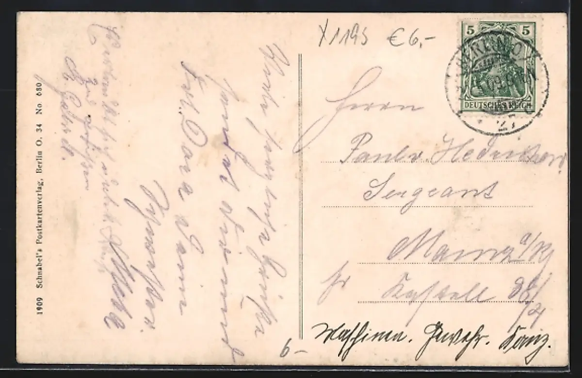alte Ansichtskarte, gelaufen 1909, guter Zustand