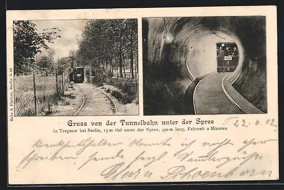 AK Treptow bei Berlin, Tunnelbahn unter der Spree, Innenansicht