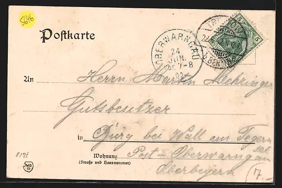 gelaufen 1902, rückseitig Klebe- und Papierreste, guter Zustand