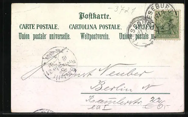 gelaufen 1901, Eckknicke li. unten und re. oben, guter Zustand