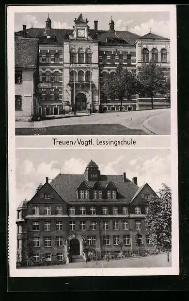 AK Treuen /Vogtl., Lessingschule von der Strasse gesehen