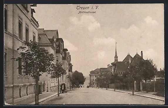 AK Treuen i. V., Moltkestrasse mit Turmgebäude