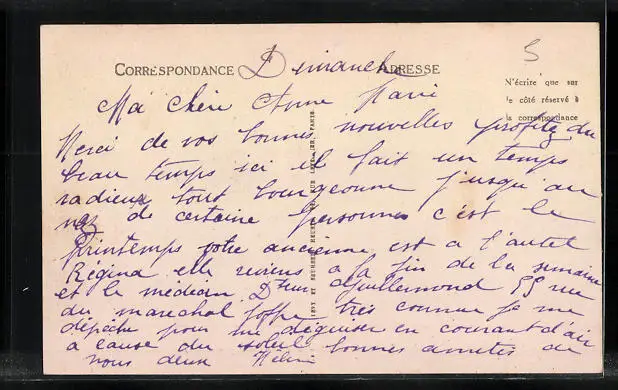 Personenbezogene Daten auf der Rückseite der Karte wurden durch blauen Textmarker unkenntlich gemacht. Die blauen Stellen sind auf die Vorderseite durchgeweicht und wirken sich negativ auf das Postkartenfoto aus