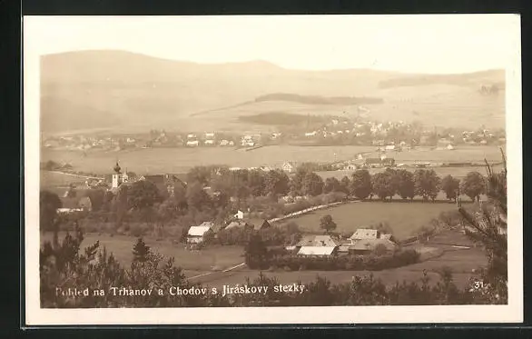 AK Trhanov, Ortsansicht mit Gebäuden und Kirche