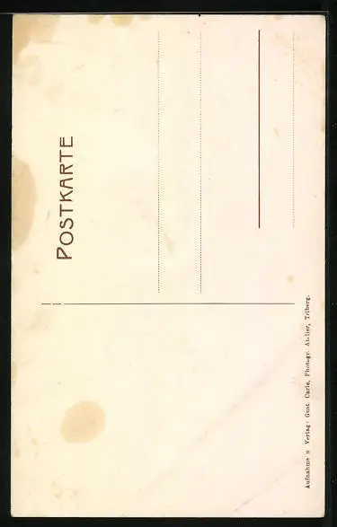 Personenbezogene Daten auf der Rückseite der Karte wurden durch blauen Textmarker unkenntlich gemacht. Die blauen Stellen sind auf die Vorderseite durchgeweicht und wirken sich negativ auf das Postkartenfoto aus