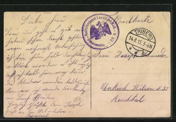 alte Ansichtskarte, gelaufen als Feldpost 1915, Eckknicke li., guter Zustand