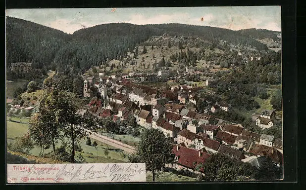 AK Triberg /Schwarzwald, Ortspartie aus der Vogelschau