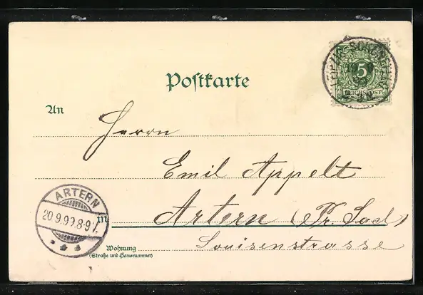 alte Ansichtskarte, gelaufen 1899, guter Zustand