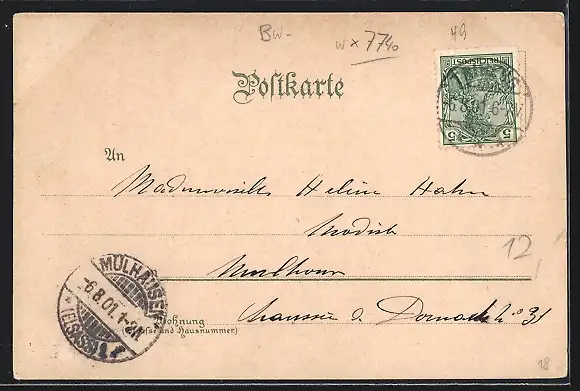 alte Ansichtskarte, gelaufen 1901, guter Zustand