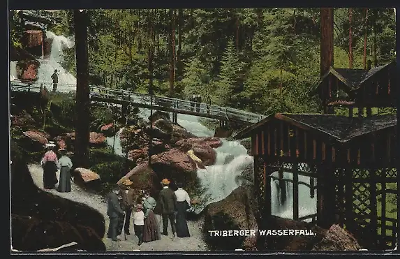 AK Triberg, Wanderer am Triberger Wasserfall